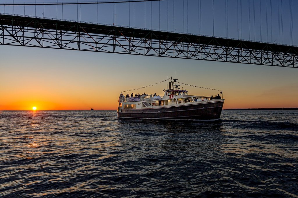 Sip n’ Sail Cruises is Mackinac Island’s premiere attraction. Enjoy 90 minutes of panoramic views and an unforgettable evening aboard Robin E, a 55’ vessel or Isle Royale Queen III, an 81′ well-appointed vessel with multiple viewing areas, heated cabins, restrooms, a full-service cash bar and live entertainment. Take advantage of amazing photo opportunities as you skirt the shoreline of Mackinac Island, view the elegant Victorian, turn of the century homes, and enjoy a spectacular sunset as you cruise under the Mighty Mackinac Bridge. Whether you are by yourself, on a date or in a group you will have a memorable experience on a Sip n’ Sail Cruise with our experienced and friendly crew.